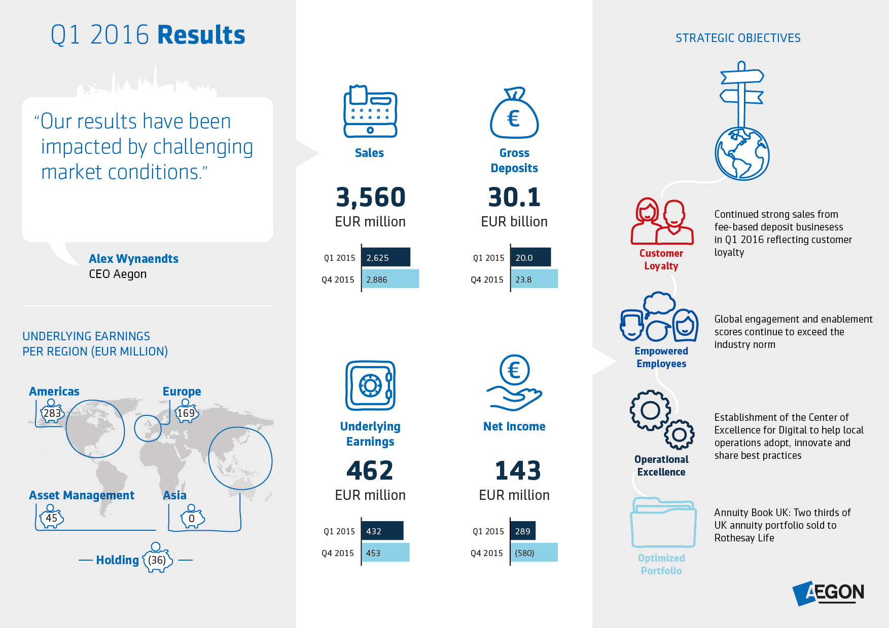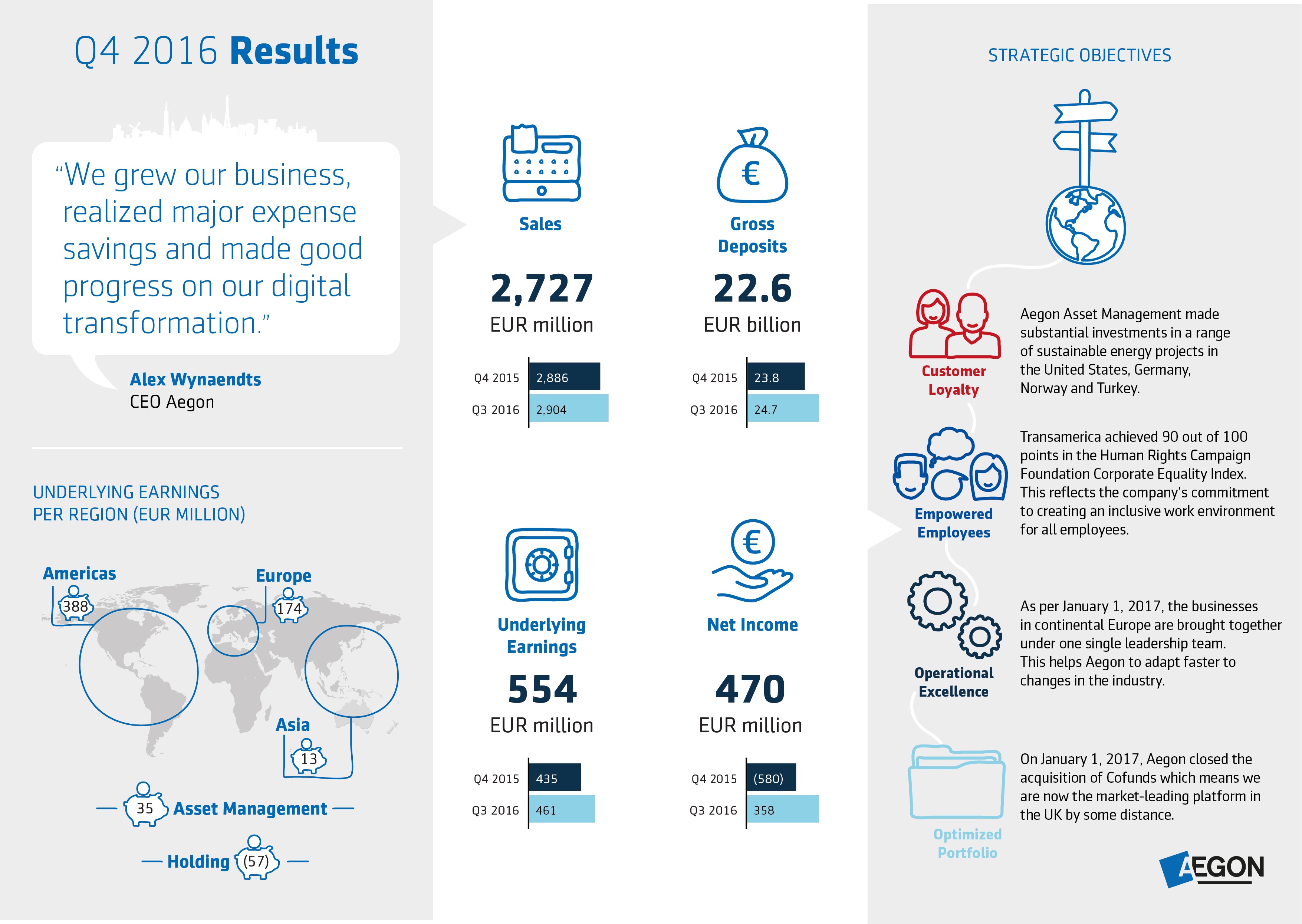 Aegon reports on key performance metrics on a quarterly basis and results under the IFRS accounting framework on a half-yearly basis. This enables us to update core investors and stakeholders more frequently on our performance and progress regarding our commitment to transform Aegon into a more focused, high-performing group.
