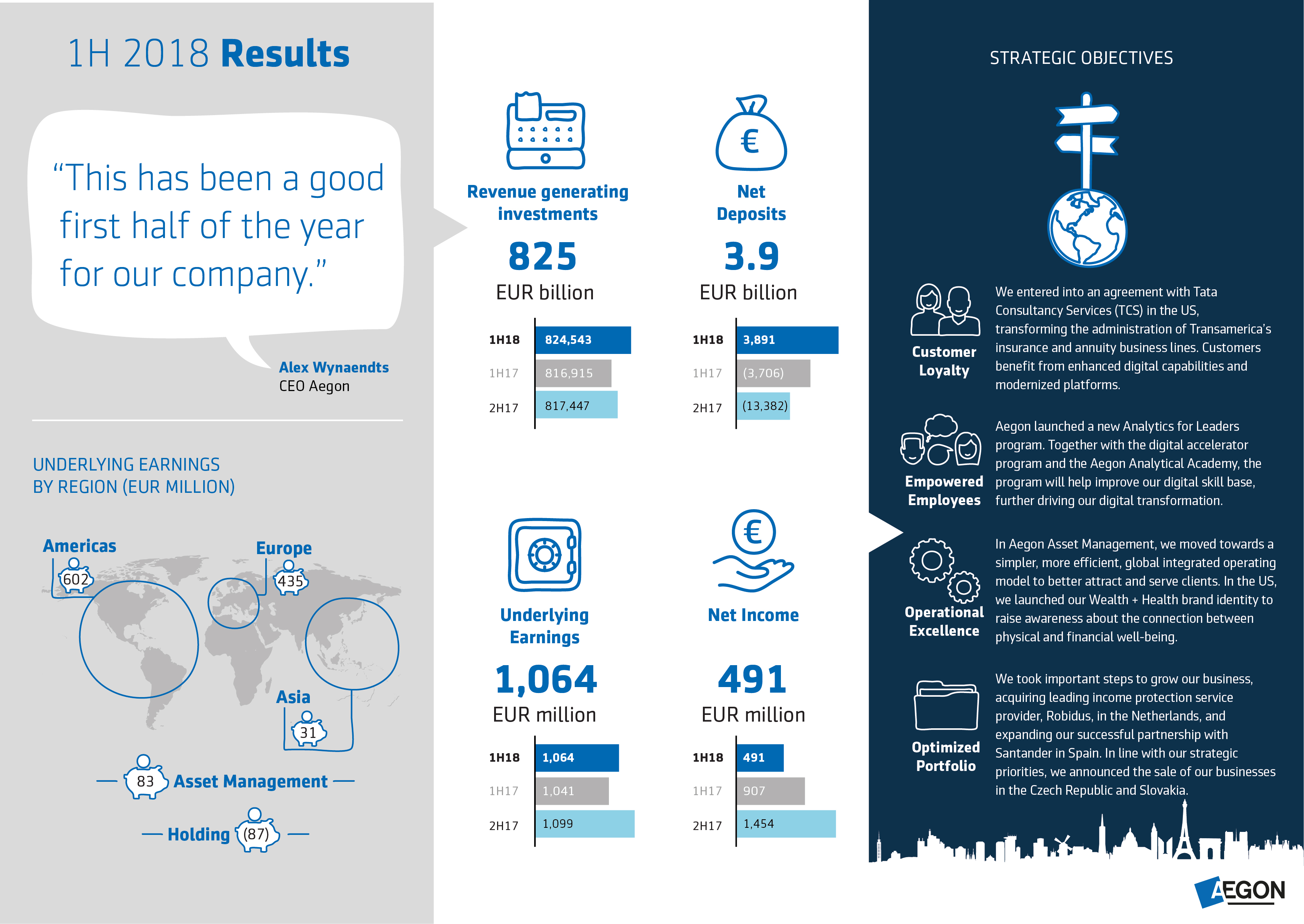 Aegon reports on key performance metrics on a quarterly basis and results under the IFRS accounting framework on a half-yearly basis. This enables us to update core investors and stakeholders more frequently on our performance and progress regarding our commitment to transform Aegon into a more focused, high-performing group.