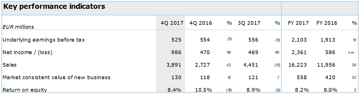 4Q 2017 Resultaten | AEX:AGN | NYSE:AEG